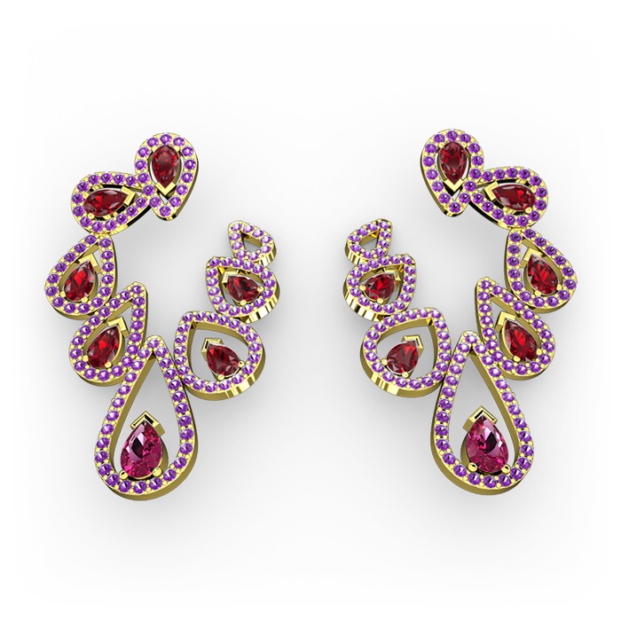 Rodolit garnet, garnet ve ametist 18 ayar altın küpe