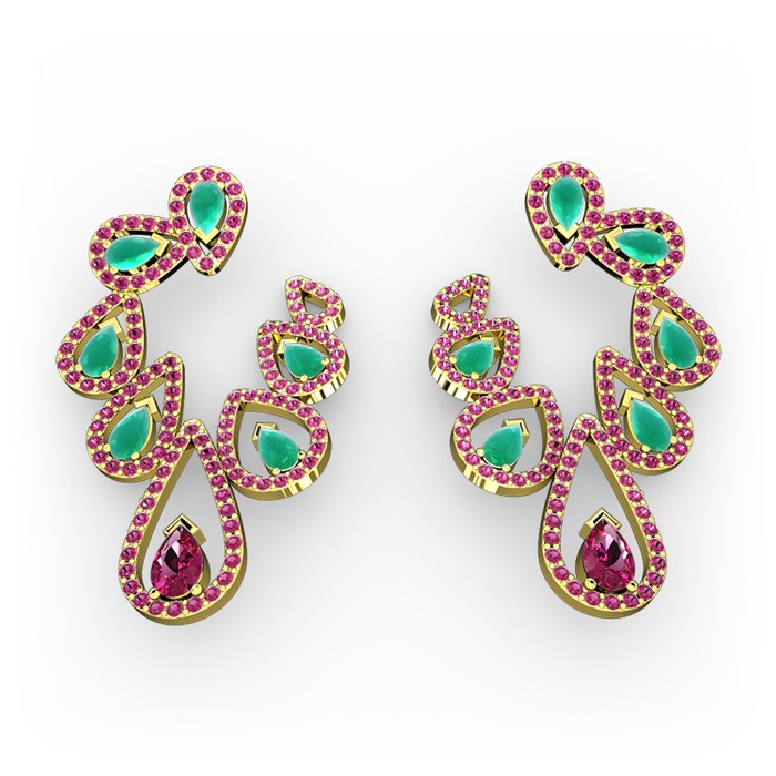 Rodolit garnet ve kök zümrüt 925 ayar altın kaplama gümüş küpe