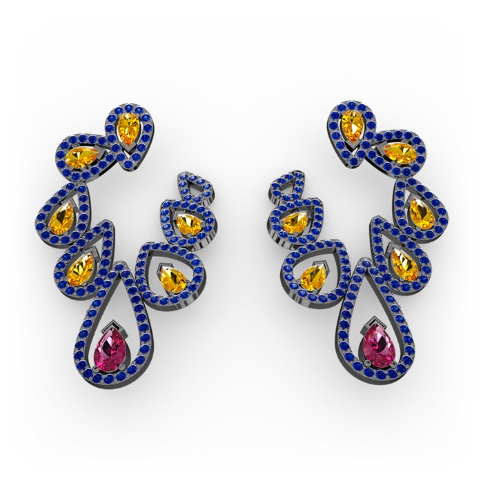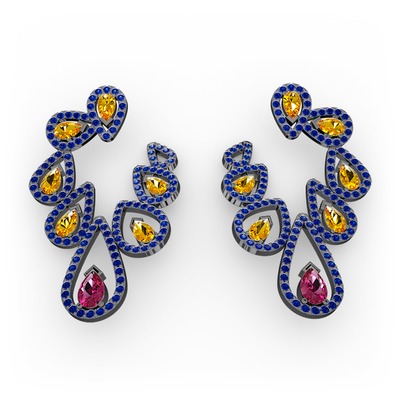 Rodolit garnet, sitrin ve lab safir 925 ayar siyah rodyum kaplama gümüş küpe