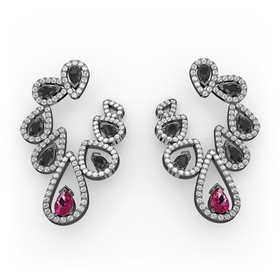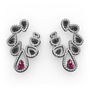 Rodolit garnet, siyah zirkon ve beyaz zirkon 925 ayar siyah rodyum kaplama gümüş küpe