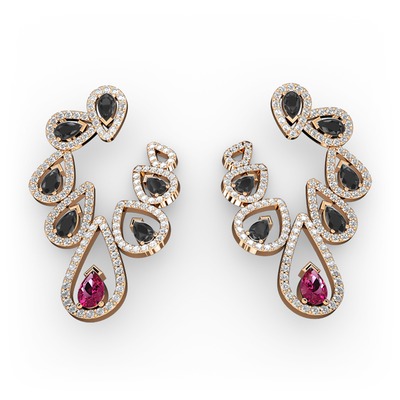 Rodolit garnet, siyah zirkon ve pırlanta 18 ayar rose altın küpe (2.882 karat)
