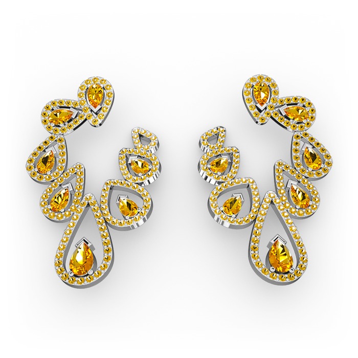 Sitrin 18 ayar beyaz altın küpe