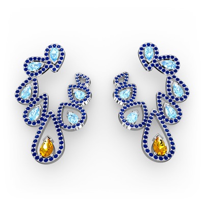 Sitrin, akuamarin ve lab safir 18 ayar beyaz altın küpe