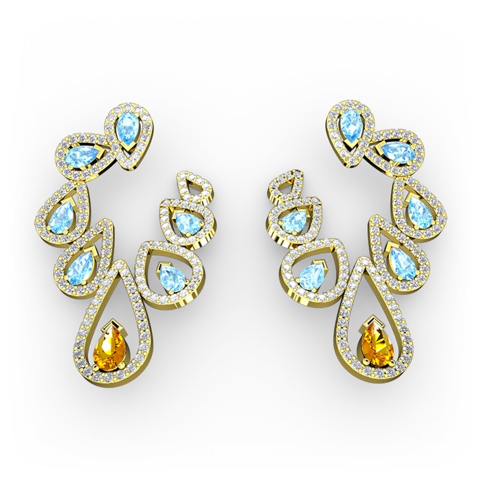 Sitrin, akuamarin ve pırlanta 18 ayar altın küpe (2.882 karat)