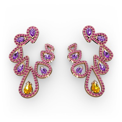 Sitrin, ametist ve rodolit garnet 18 ayar rose altın küpe