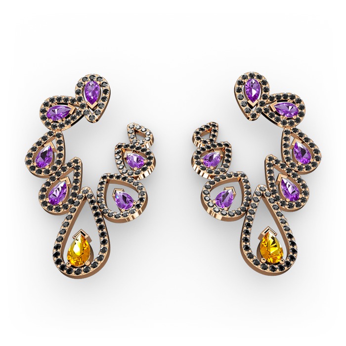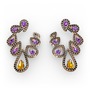 Sitrin, ametist ve siyah zirkon 8 ayar rose altın küpe