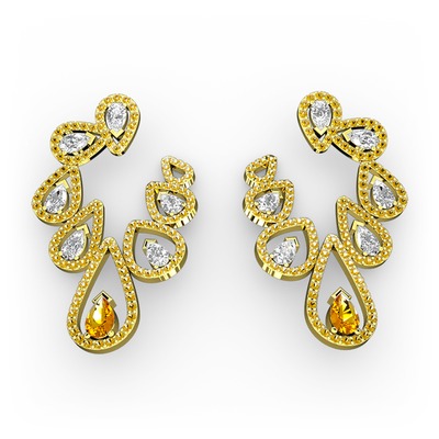 Sitrin ve beyaz zirkon 14 ayar altın küpe