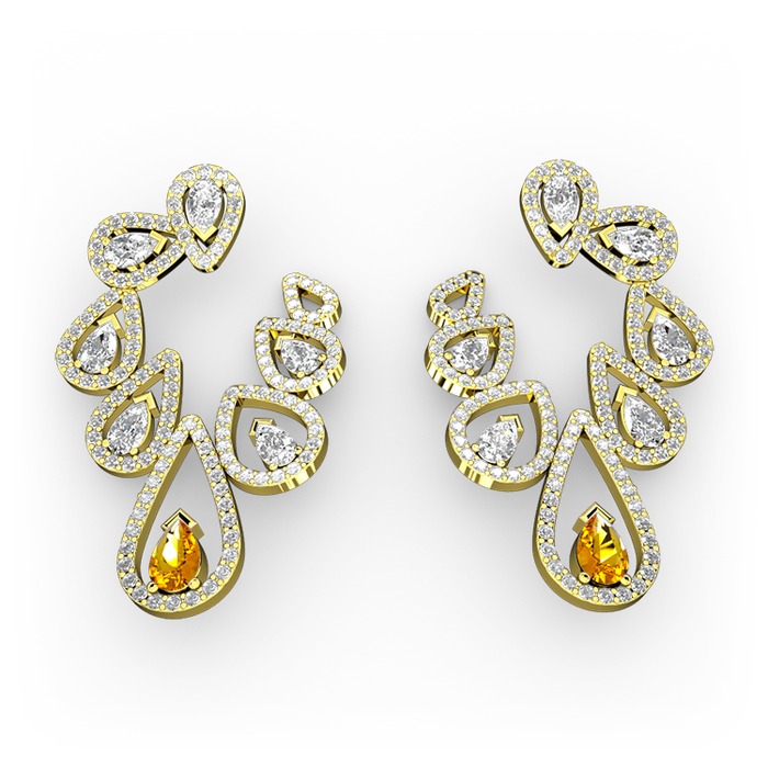 Sitrin ve beyaz zirkon 925 ayar altın kaplama gümüş küpe