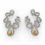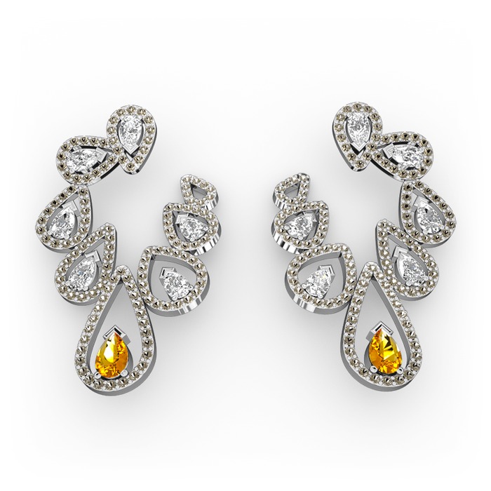 Sitrin, beyaz zirkon ve dumanlı kuvars 18 ayar beyaz altın küpe