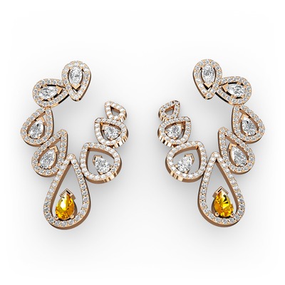 Sitrin, beyaz zirkon ve pırlanta 18 ayar rose altın küpe (2.882 karat)
