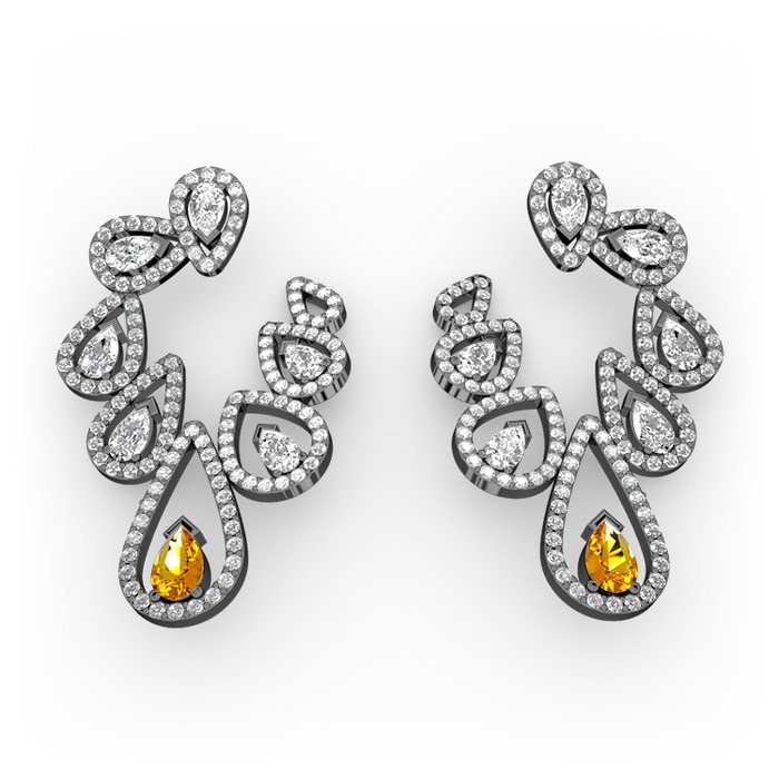 Sitrin ve beyaz zirkon 925 ayar siyah rodyum kaplama gümüş küpe