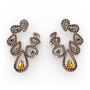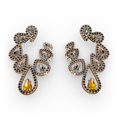 Sitrin, dumanlı kuvars ve siyah zirkon 18 ayar rose altın küpe