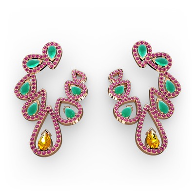 Sitrin, kök zümrüt ve rodolit garnet 18 ayar rose altın küpe