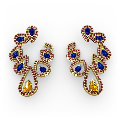 Sitrin, lab safir ve garnet 925 ayar altın kaplama gümüş küpe