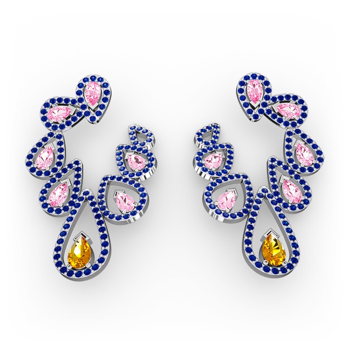 Sitrin, pembe kuvars ve lab safir 925 ayar gümüş küpe