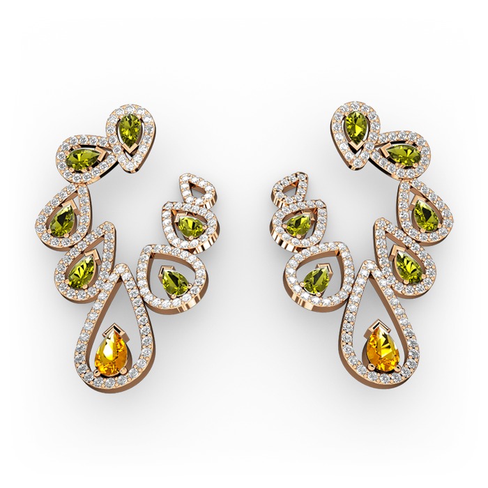 Sitrin, peridot ve beyaz zirkon 8 ayar rose altın küpe