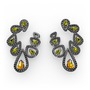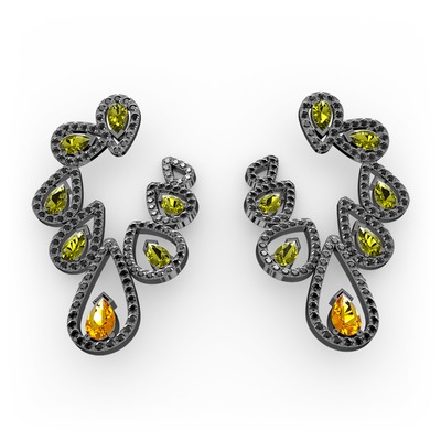 Sitrin, peridot ve siyah zirkon 925 ayar siyah rodyum kaplama gümüş küpe