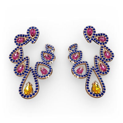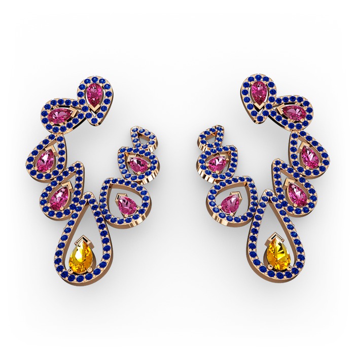 Sitrin, rodolit garnet ve lab safir 18 ayar rose altın küpe