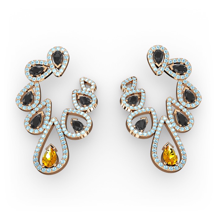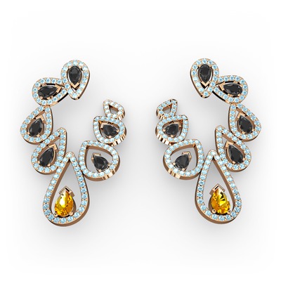 Sitrin, siyah zirkon ve akuamarin 8 ayar rose altın küpe