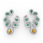 Sitrin, yeşil kuvars ve pırlanta 18 ayar beyaz altın küpe (2.882 karat)