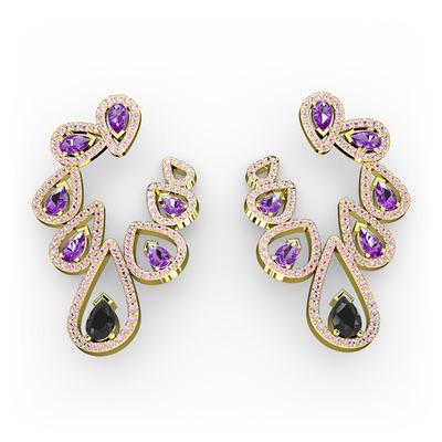 Siyah zirkon, ametist ve pembe kuvars 14 ayar altın küpe