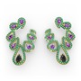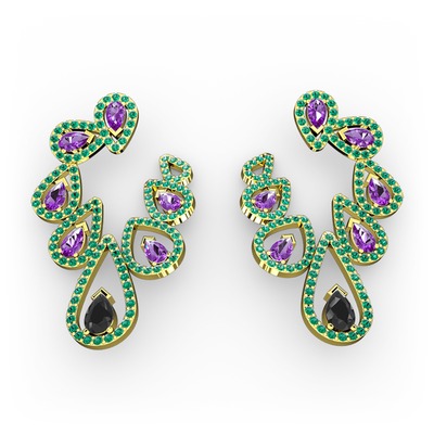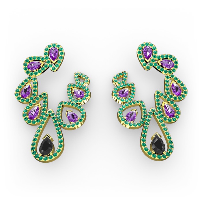 Siyah zirkon, ametist ve yeşil kuvars 925 ayar altın kaplama gümüş küpe