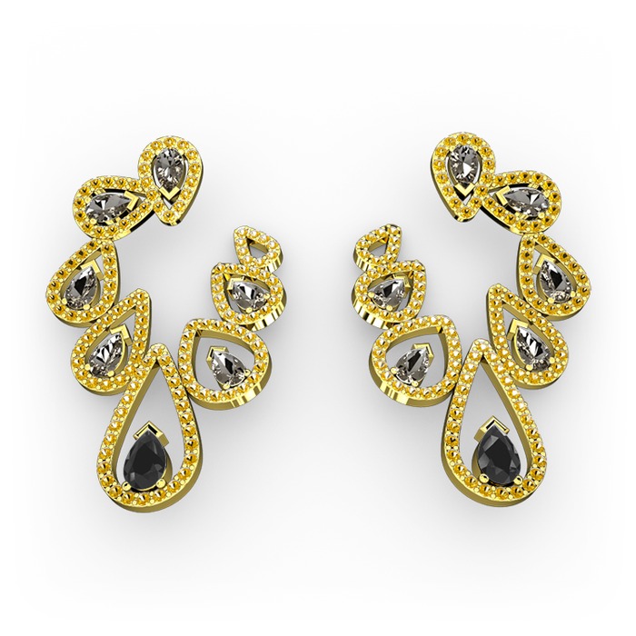 Siyah zirkon, dumanlı kuvars ve sitrin 14 ayar altın küpe