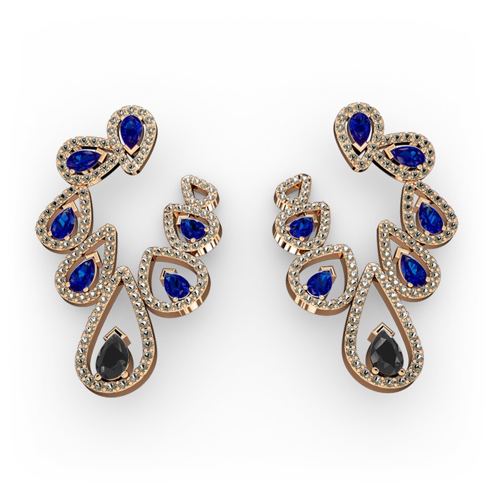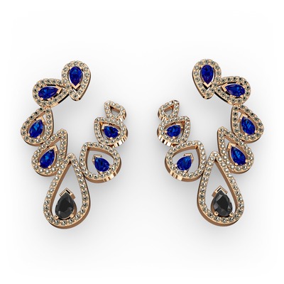 Siyah zirkon, lab safir ve dumanlı kuvars 18 ayar rose altın küpe