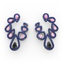 Siyah zirkon, pembe kuvars ve lab safir 925 ayar siyah rodyum kaplama gümüş küpe