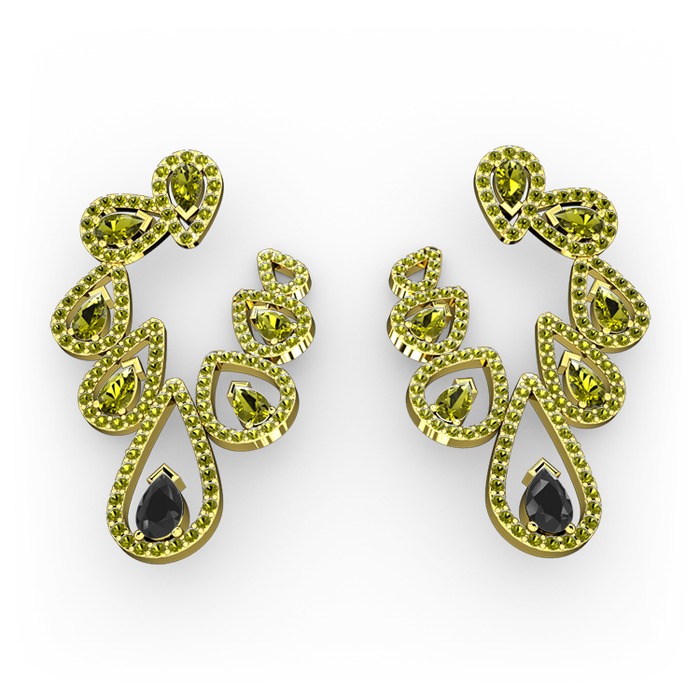 Siyah zirkon ve peridot 14 ayar altın küpe