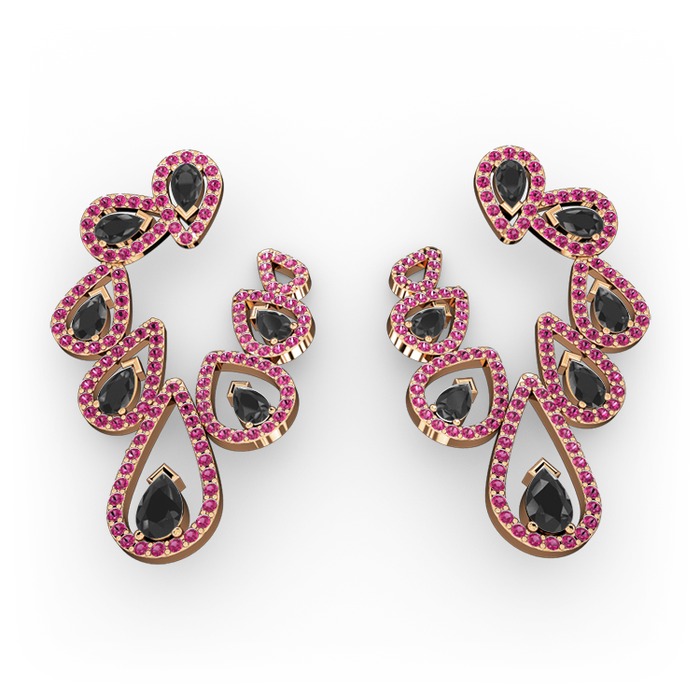 Siyah zirkon ve rodolit garnet 14 ayar rose altın küpe
