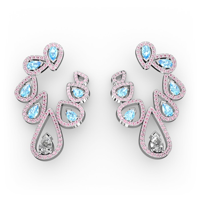 Swarovski, akuamarin ve pembe kuvars 925 ayar gümüş küpe