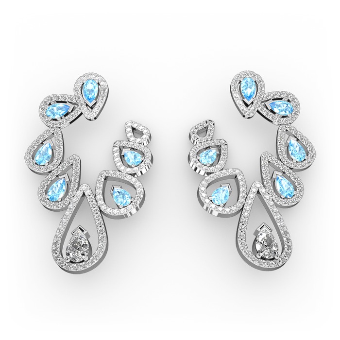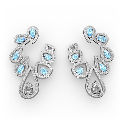 Swarovski, akuamarin ve pırlanta 8 ayar beyaz altın küpe (2.882 karat)