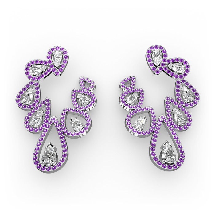 Swarovski, beyaz zirkon ve ametist 14 ayar beyaz altın küpe