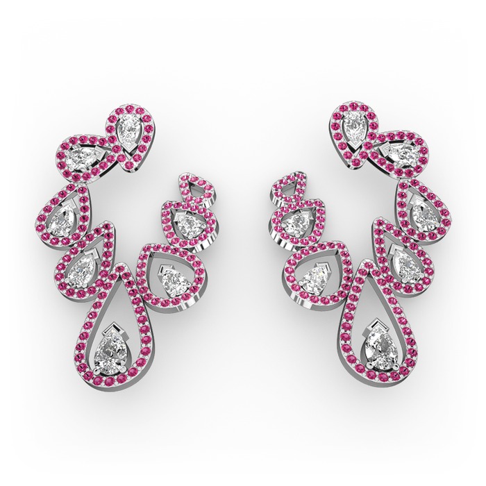 Swarovski, beyaz zirkon ve rodolit garnet 14 ayar beyaz altın küpe
