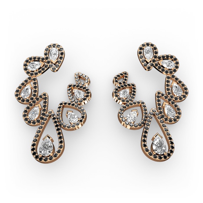 Swarovski, beyaz zirkon ve siyah zirkon 18 ayar rose altın küpe