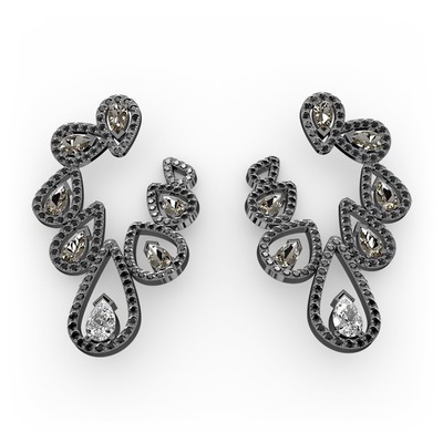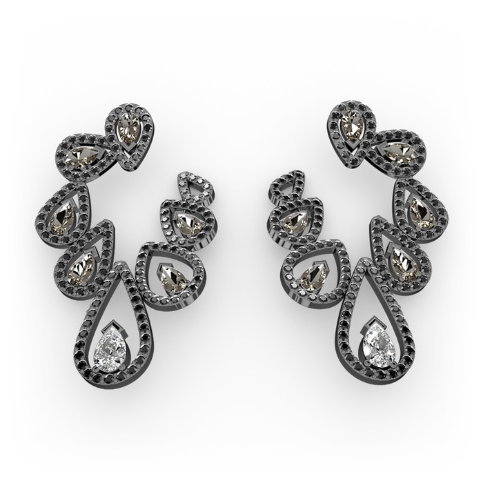 Swarovski, dumanlı kuvars ve siyah zirkon 925 ayar siyah rodyum kaplama gümüş küpe