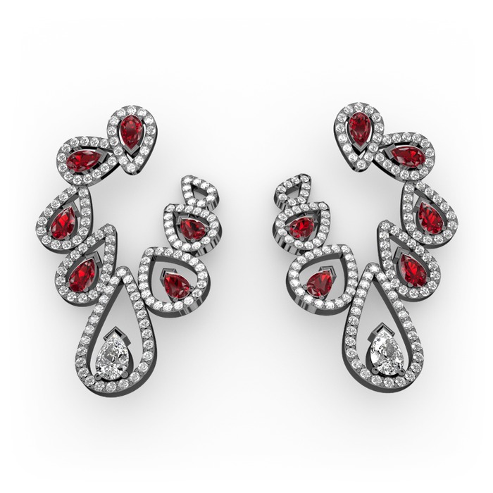 Swarovski, garnet ve pırlanta 925 ayar siyah rodyum kaplama gümüş küpe (2.882 karat)