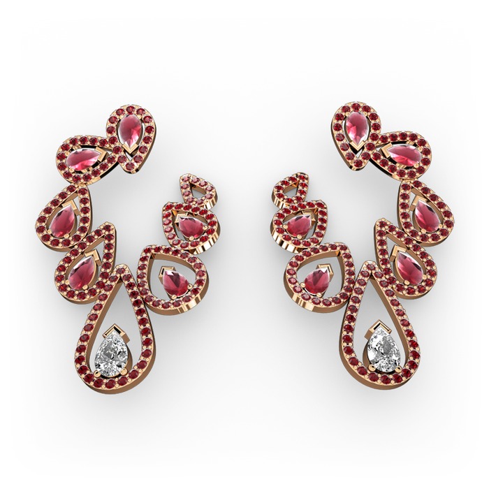 Swarovski, kök yakut ve garnet 18 ayar rose altın küpe
