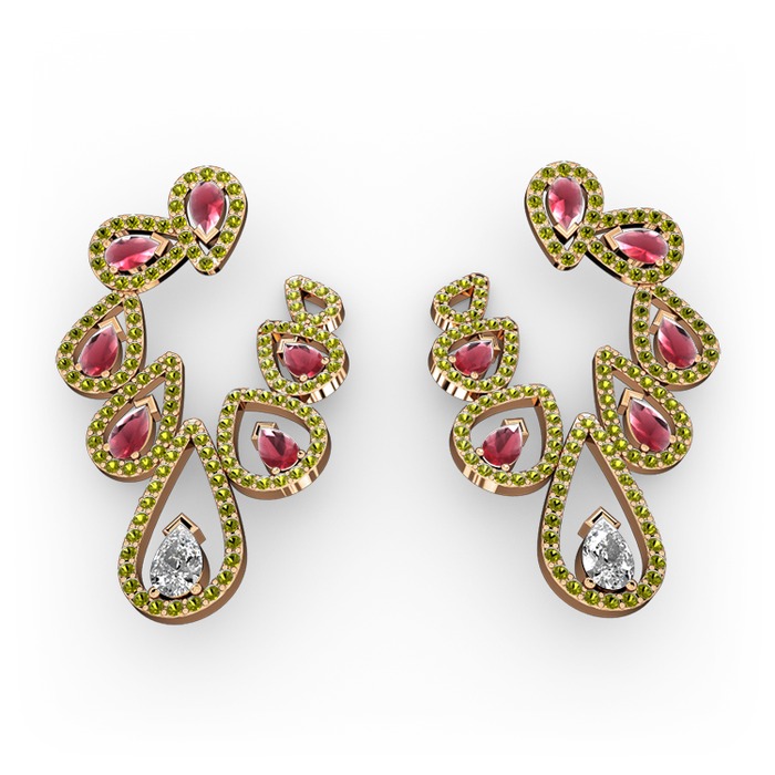 Swarovski, kök yakut ve peridot 18 ayar rose altın küpe
