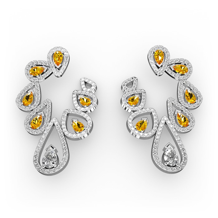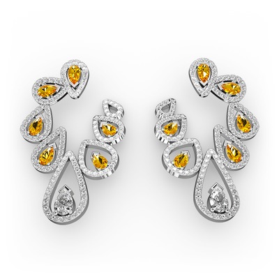 Swarovski, sitrin ve pırlanta 925 ayar gümüş küpe (2.882 karat)