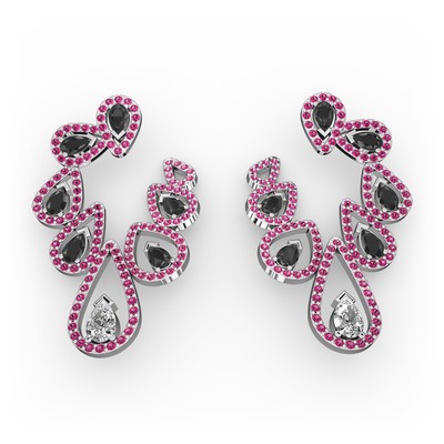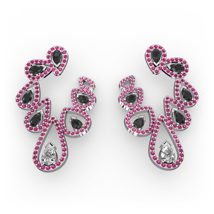 Swarovski, siyah zirkon ve rodolit garnet 8 ayar beyaz altın küpe