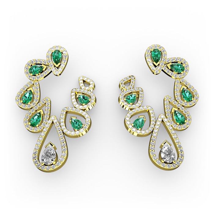 Swarovski ve yeşil kuvars 18 ayar altın küpe