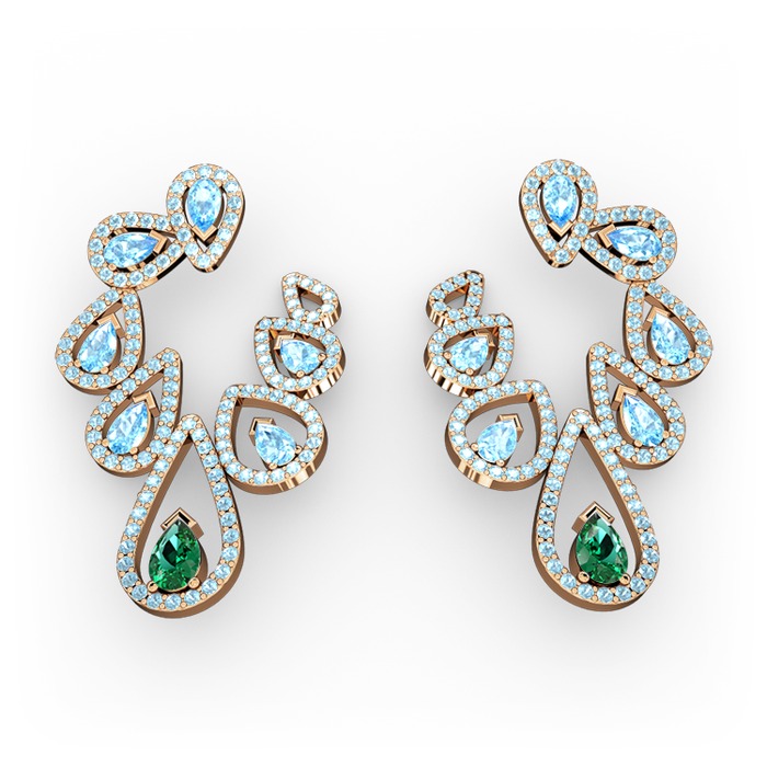 Yeşil kuvars ve akuamarin 14 ayar rose altın küpe