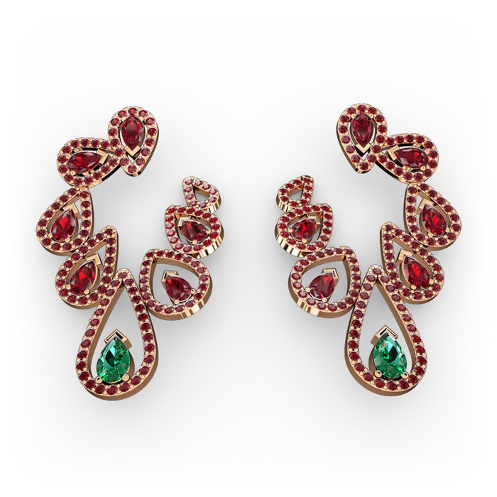 Yeşil kuvars ve garnet 8 ayar rose altın küpe