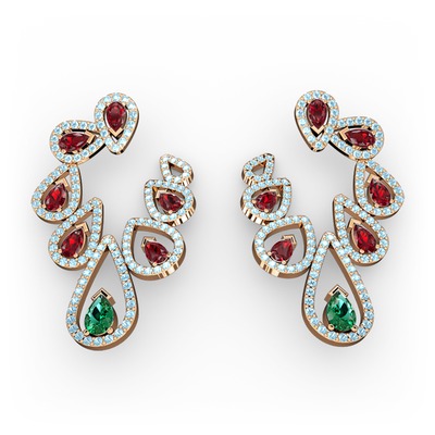 Yeşil kuvars, garnet ve akuamarin 14 ayar rose altın küpe