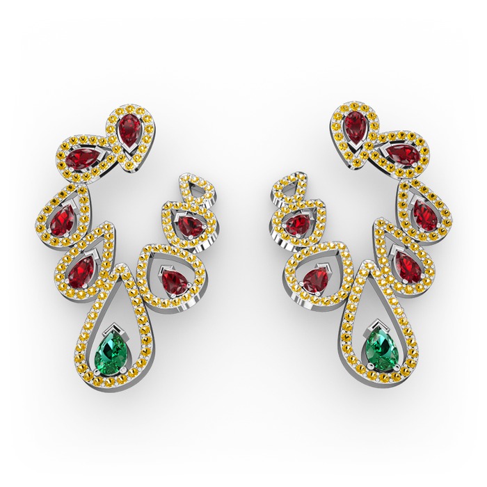 Yeşil kuvars, garnet ve sitrin 925 ayar gümüş küpe