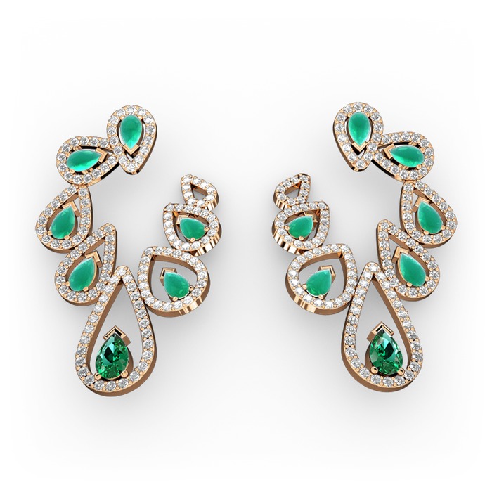 Yeşil kuvars, kök zümrüt ve pırlanta 18 ayar rose altın küpe (2.882 karat)