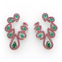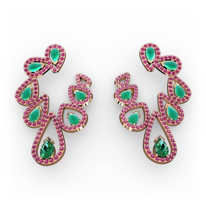 Yeşil kuvars, kök zümrüt ve rodolit garnet 18 ayar rose altın küpe
