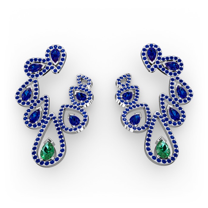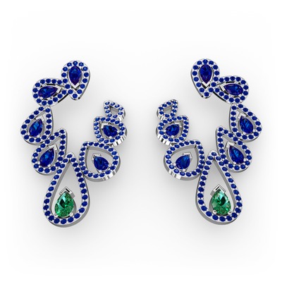 Yeşil kuvars ve lab safir 8 ayar beyaz altın küpe